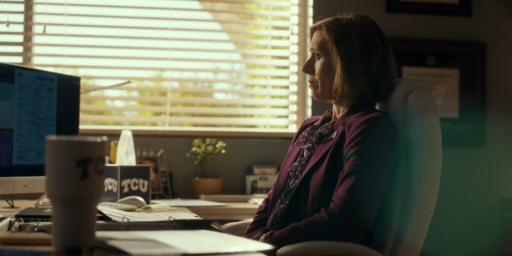 Part of why the Greta Stidham storyline feels grounded is that it was filmed in real TCU spaces.